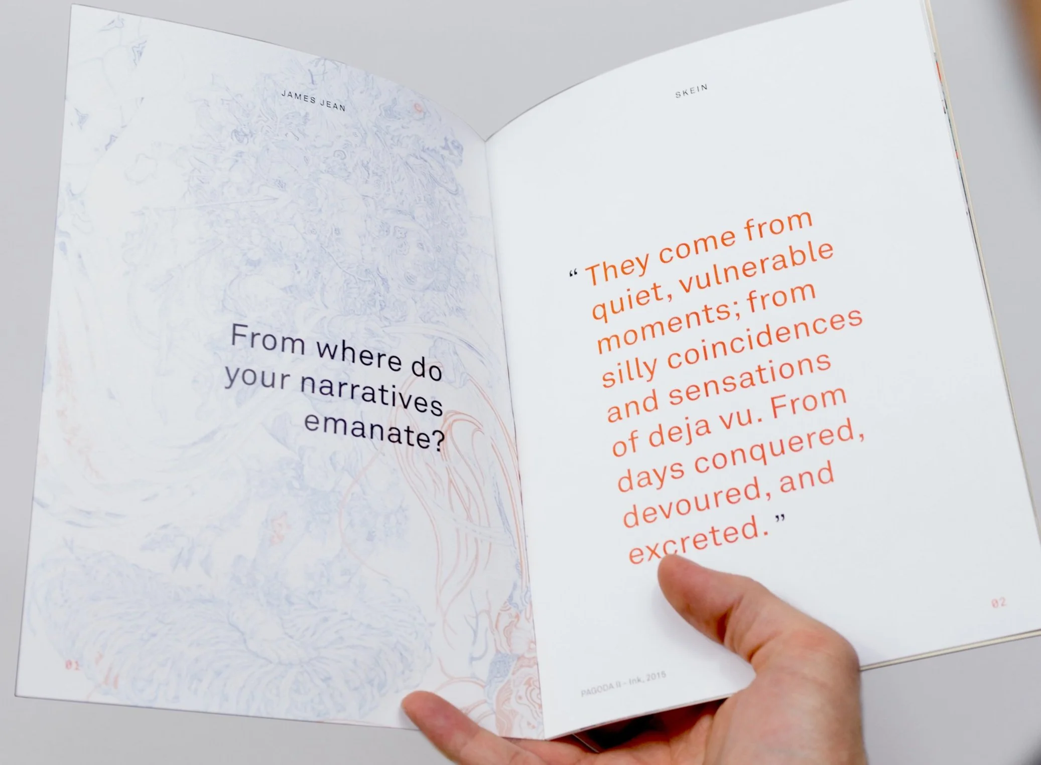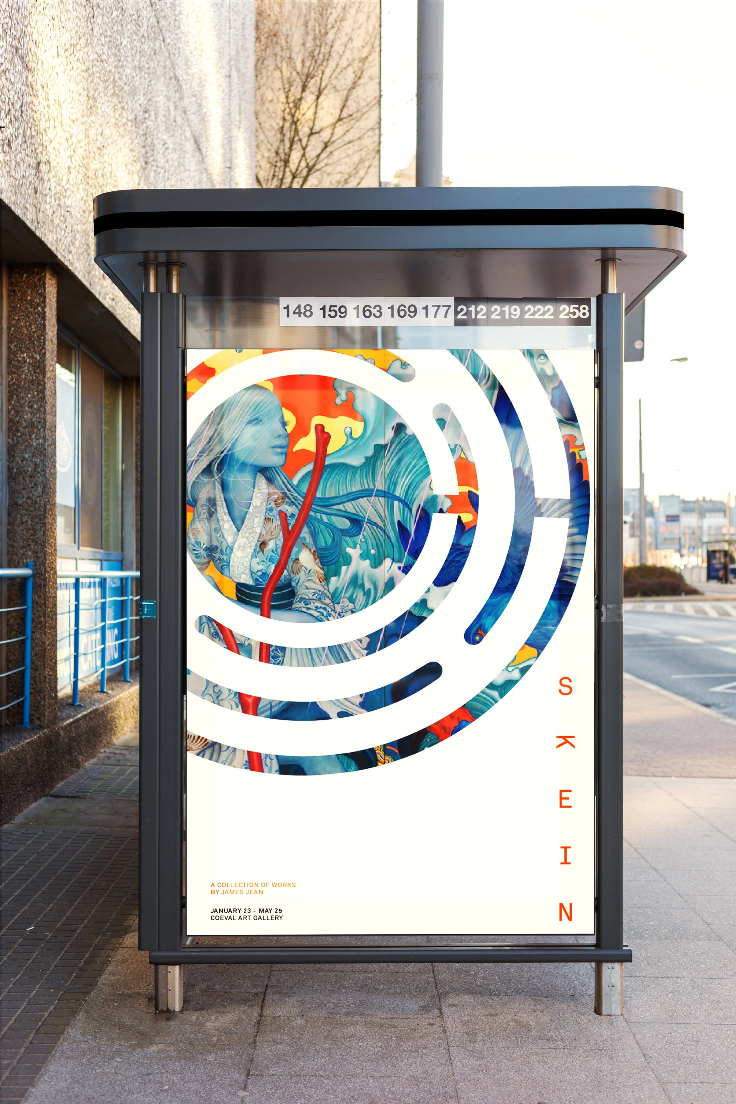 James Jean is a Taiwanese American artist known for his large scale gallery work. His paintings fuse contemporary subjects with traditional techniques to create ethereal larger-than-life pieces. Skein is a concept solo gallery showing. Promotional materials, including a ten page brochure and both digital and outdoor advertising, were designed with bold, eye-catching color and type choices to emphasize his work.